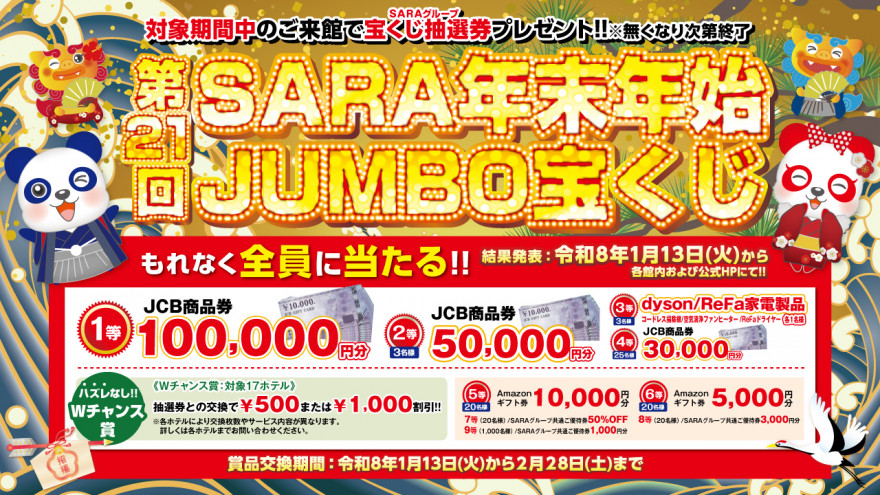 ⇒1月13日(火)より、館内およびSARA公式ホームページにて